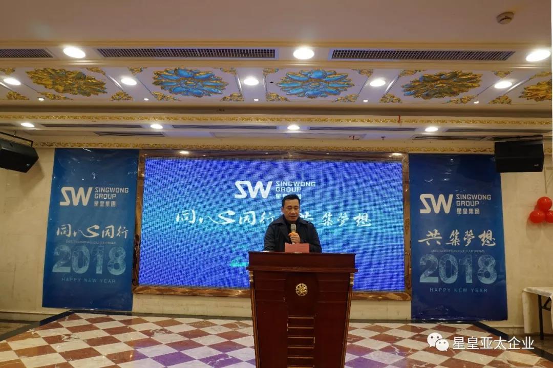 今天我們歡聚一堂,舉行星皇集團(tuán)2018年“同心同行,共筑夢(mèng)想”新春晚會(huì)。我謹(jǐn)代表公司,向你們及你們的家人致以新年最美好的祝福和最誠(chéng)摯的問候!